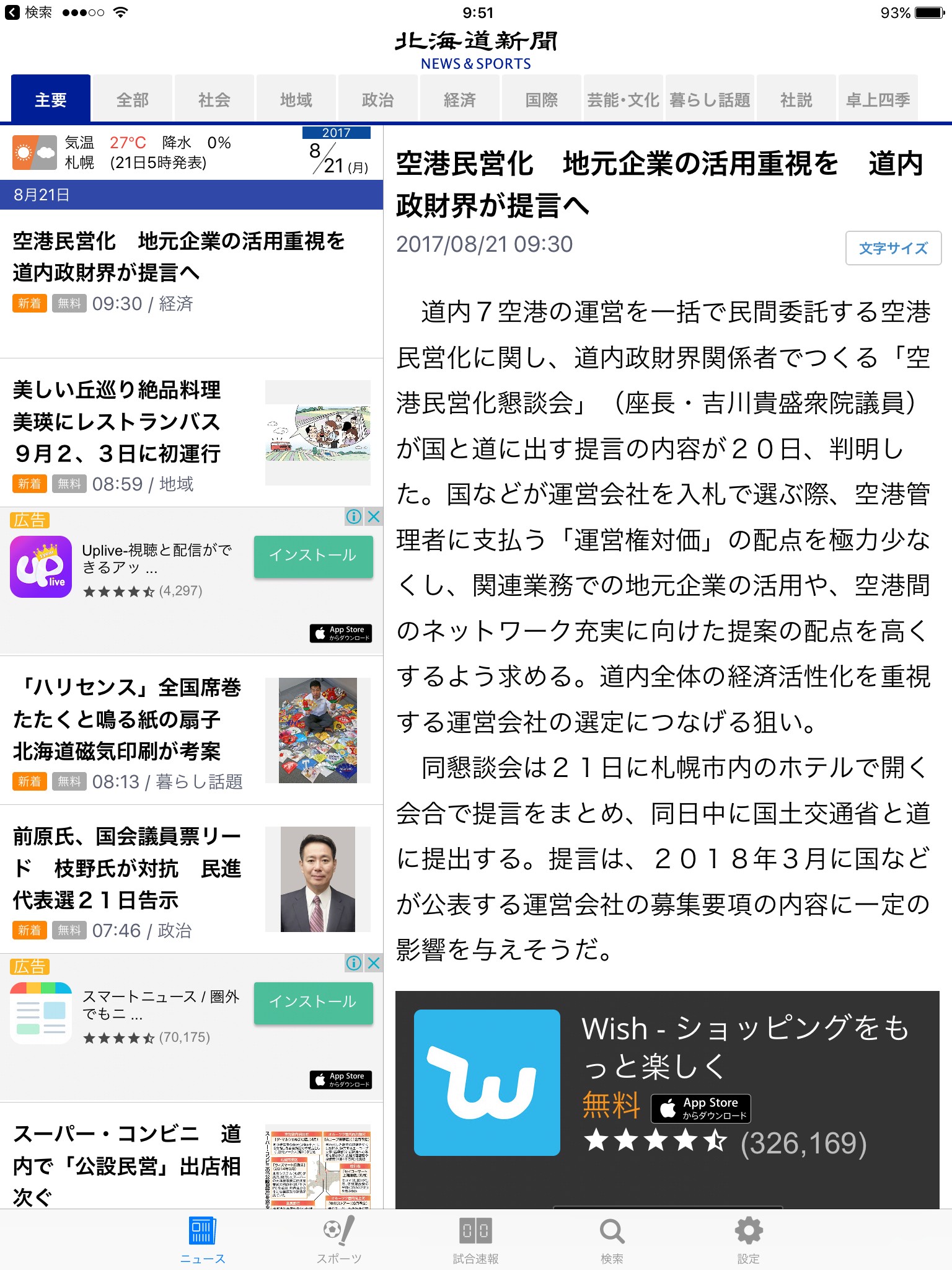 - 「北海道新聞NEWS&SPORTS」のまとめ