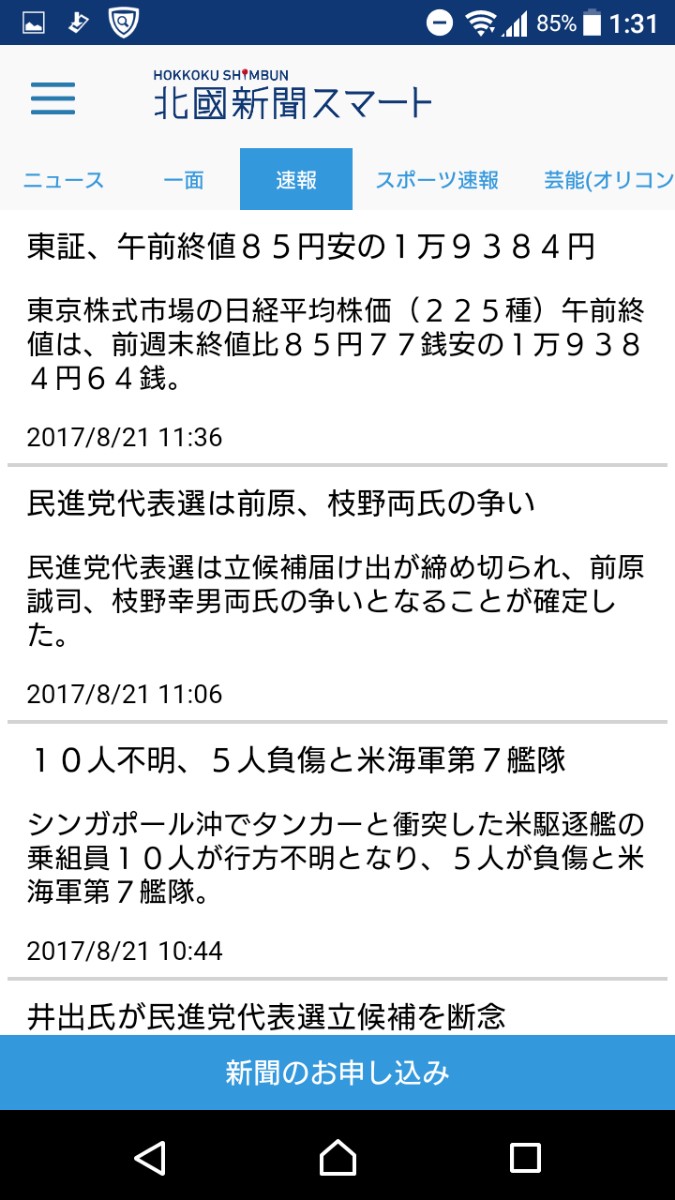 昨今、スマートフォンやタブレットの普及率は著しく上がる一方で、宅配の新聞は購買率の減少が目立つ時代、全国紙でもインターネット対応に力を入れています。地方新聞社の対応が注目されている中で、石川県民に根強い人気の北國新聞がアプリでの新聞記事配信を開始しました。「北國新聞スマート」はアプリで見る新聞です。石川県をはじめとする北陸地方の情報のみに留まらず、国内外の主要ニュースや芸能情報まで幅広く閲覧できます。