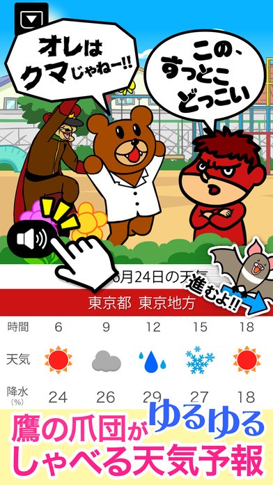 ・天気に応じて個性あるキャラクターがしゃべりだす