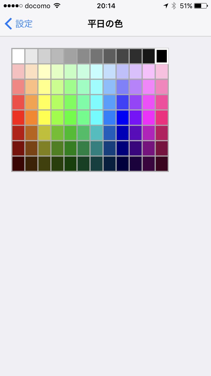・色設定の「平日の色」「土曜日の色」「日曜日の色」をそれぞれタップします