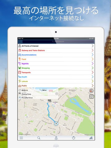 このアプリは、100%のオフラインでもしっかりナビしてくれる新感覚のナビアプリです。非常に詳細で美しい地図でとても見やすく、強力な検索で2D、3Dと拡張現実のナビゲーションとルーティング。ルーティング中の写真と動画を撮影することも可能です。あなたの旅行を簡単に計画的に立てることができるお役たちのアプリ。共有位置など便利なサービスを使うことで正確な位置を調べることもできちゃいます。ロンドンオフライン地図+ +は、個人旅行のアシスタントもしてくれます。100%のオフラインは、いつでもどこでも動作します。インターネットの接続も必要ありません。データプランの長寿命化を使用するときにもうってつけのアプリです。