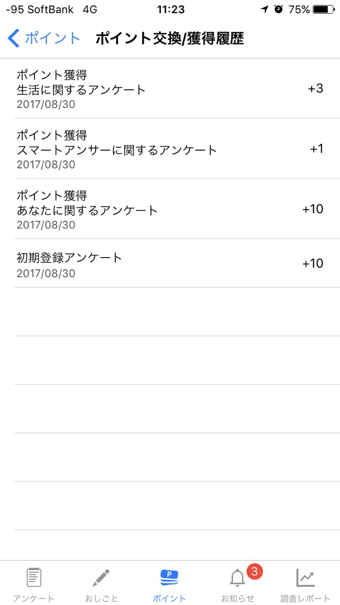 8.アンケート一覧画面へ自動的に戻り、獲得したポイント数が反映されます。