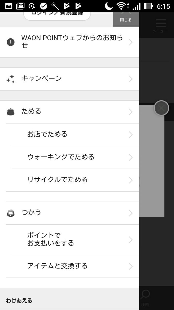 「smart WAONアプリ」で自分の所持しているWAONポイントを確認してみましょう。「smart WAONアプリ」画面下のポイント履歴を確認すると、保有ポイント数の確認が可能です。その下の欄には、自分のポイントの有効期限が記入しています。ポイントの失効が2018年7月末で242ポイント、2019年末で67ポイントです。元の画面に戻ってみましょう。今、イオン系列のお店で開催されているキャンペーン情報が一覧になっていてすばやく確認できます。画面右側のメニューボタンをタップすると、ポイントの貯め方のポイントを見ることも可能です。「リサイクルでためる」をタップしてみましょう。古新聞やペットボトルなどを設置されているリサイクル機で処理をすると、その代わりにWAONポイントを付与されます。「smart WAONアプリ」は、お得な情報が詰まったアプリです。