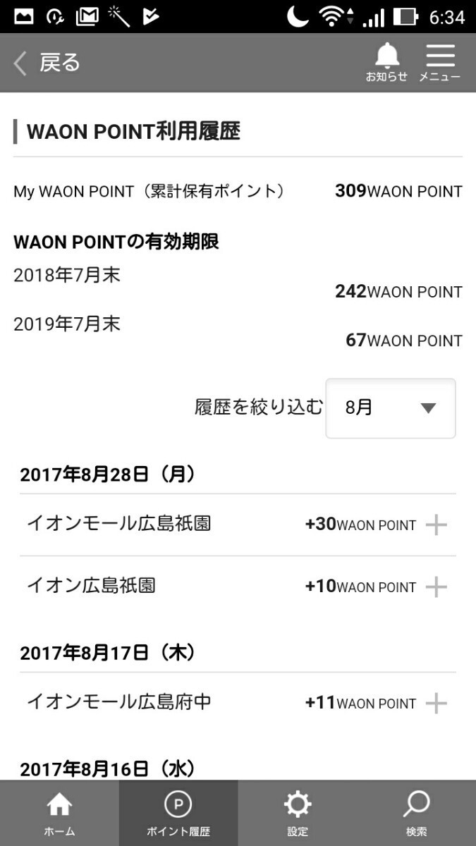 「smart WAONアプリ」は、イオン系列のお店で貯めたポイントやお店で利用したポイントの確認が簡単にできます。管理画面では、WAONポイントの有効期限も記入されていて、賢くポイントを利用することができます。