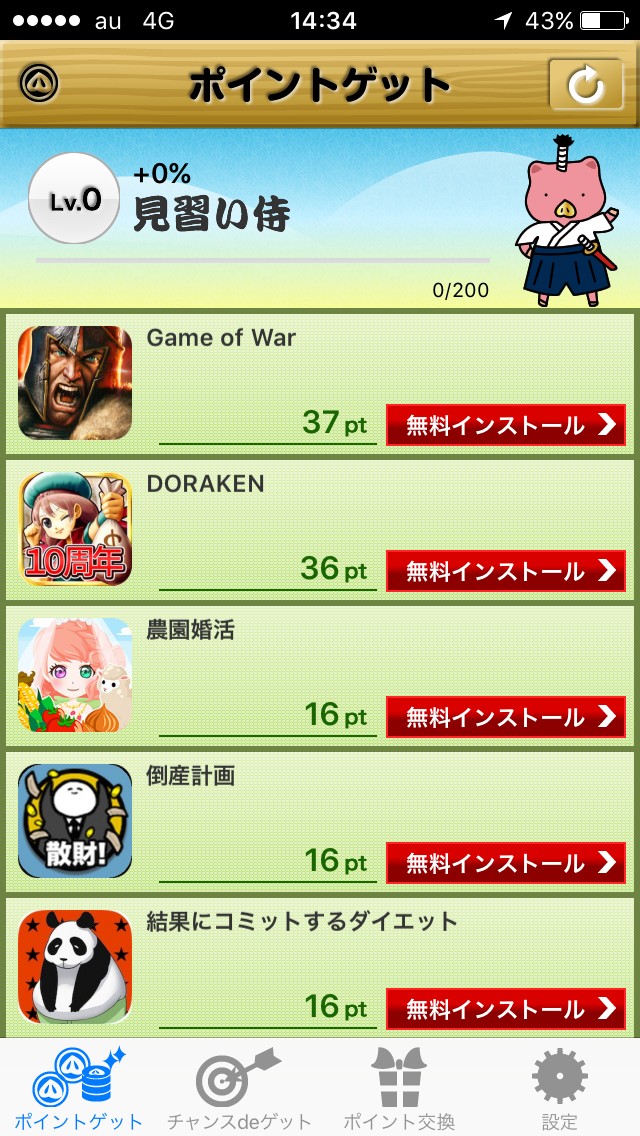 ・ポイントを貯めると経験値も貯まり、経験値が貯まりレベルアップすると、会得ポイントの倍率が増え、ポイントを貯めやすくできる