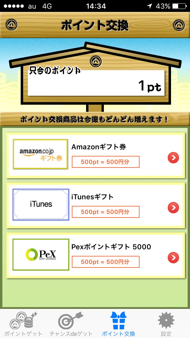 という点です。時間があるときに、アプリをインストールなどしてポイントをゲットできるので、気軽に始められますよ。ポイントが500ポイント以上になったら、Amazonギフト券、iTunesギフト、Pexポイントギフトに交換しましょう。