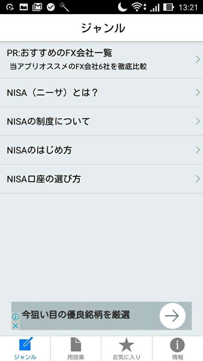 「NISA(ニーサ)の始め方 初心者が始める株式投資入門と用語辞典」は、誰でも分かりやすいように、難しい株式のことを解説も交えながら情報を提示してくれるアプリです。今日から「NISA(ニーサ)の始め方 初心者が始める株式投資入門と用語辞典」で投資を勉強してみましょう。