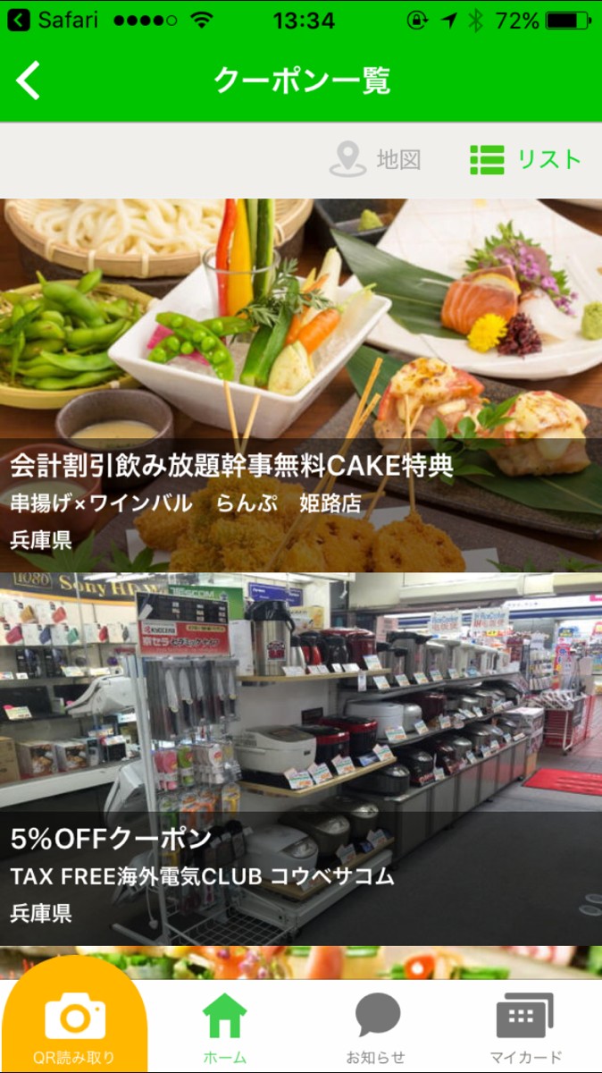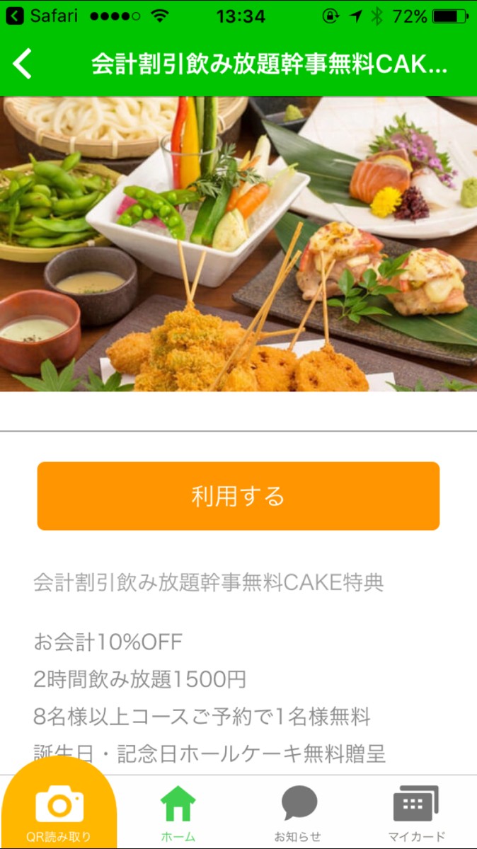 アプリのクーポンは登録したお店はもちろん、スタンプカードを登録していないお店のクーポンもチェックすることができます。チェックしたクーポンは「利用する」ボタンをタップすれば簡単に使用することができますよ。さっそく近くのお店のクーポンをチェックしましょう。
