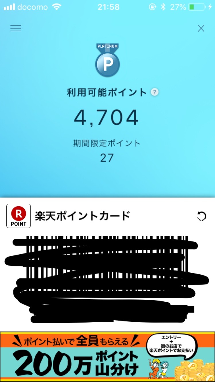 5.入力すると楽天ポイントカードのバーコードが出てきます。出てきたら登録完了です。