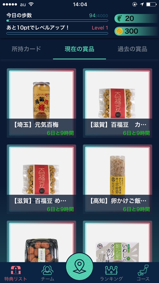 ・「24時間以内に1万歩達成」など、いろいろな依頼がきます。クリアすれば、お宝カードを手にすることが可能です。