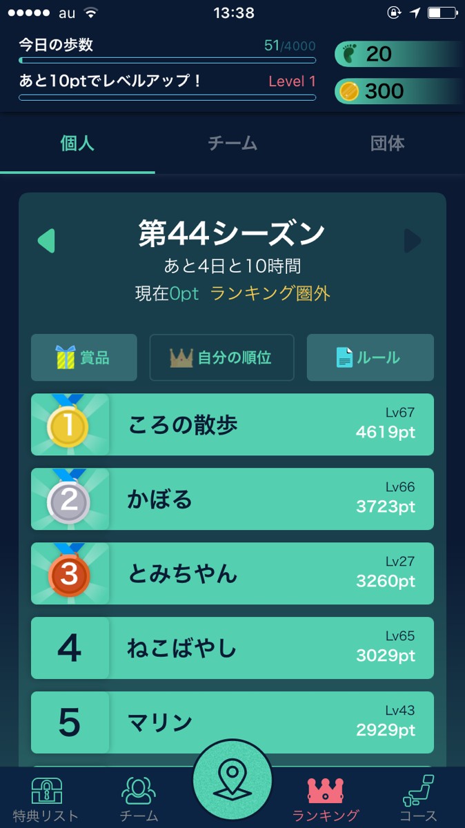 ・チーム機能がついているので、友人や家族、恋人などとチームを組むことができます。みんなと一緒にやるとより楽しくできます。