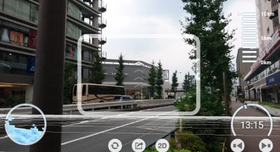 天気予報アプリ「アメミル」は、通常のマップ表示の2D(平面画像)から、AR(拡張現実)を使った3D(カメラ映像)表示へのモード切り替えができます。