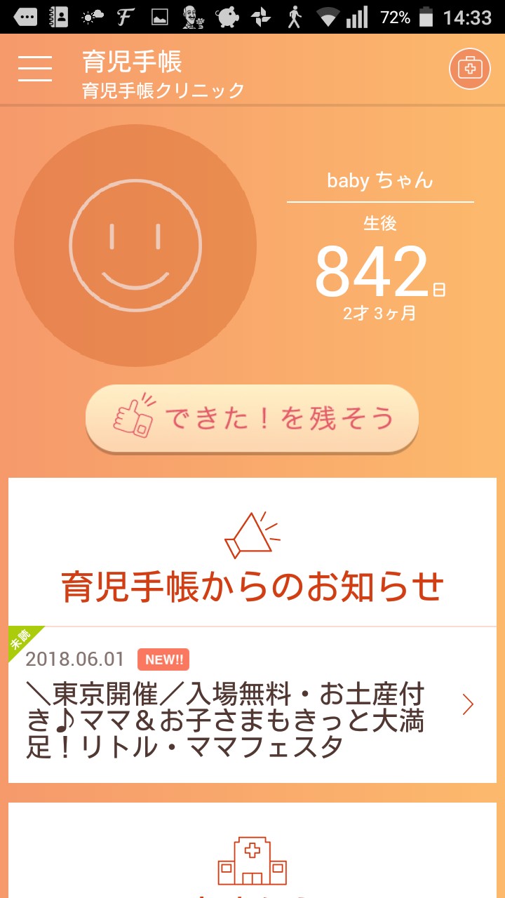 本アプリの最大の特徴は、通っている病院を登録すると、そこから子供の成長に合わせて情報を受け取れることです。提携している病院は全部で88あり、かかりつけの病院が無くても育児手帳クリニックに自動登録されるので情報はチェックできます。