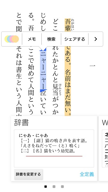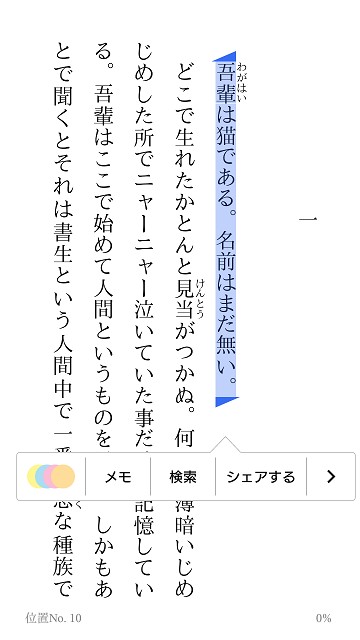 2.選択した文字列のハイライトが完了します。文字列の範囲選択後、色の指定をするだけの簡単操作になるため、気になった箇所があっても読書を邪魔することなくすばやくマーキングできます。