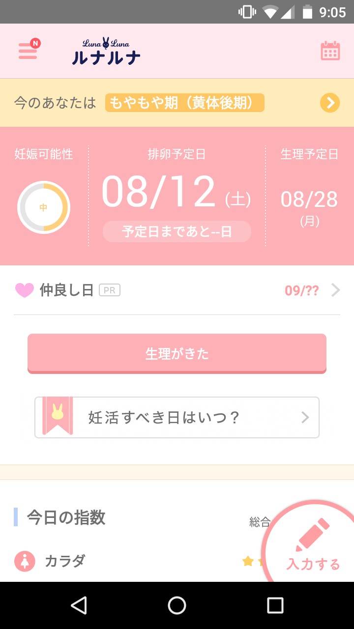 生理と排卵のスケジュールを中心に、女性の身体をサポートしてくれる「ルナルナ : 無料で生理/排卵日予測 生理日管理アプリ」。是非、インストールして、ブルーデーを上手に乗り切ったり、明るい家族計画に活用したりしてください。