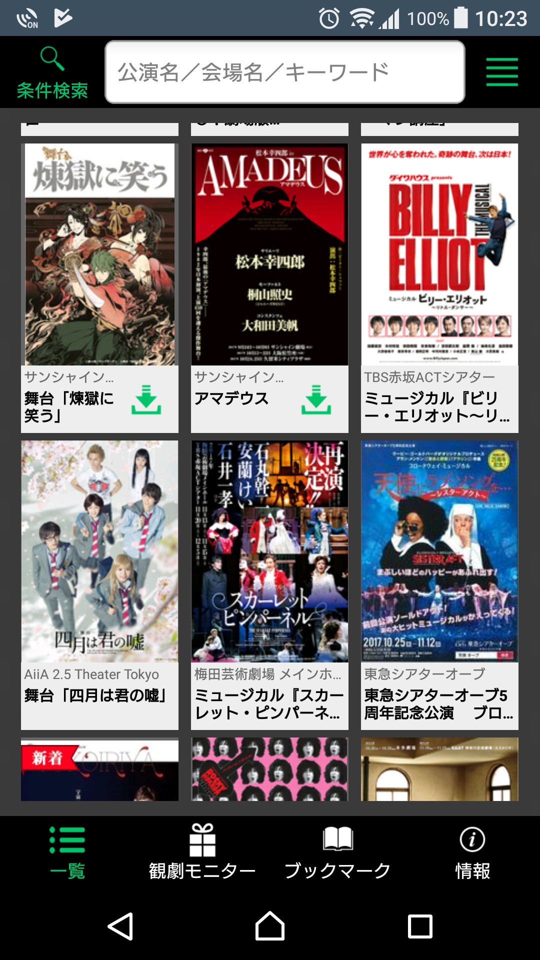 すでにチェックしたい公演が決まっていれば、アプリトップ画面の上の検索ウィンドウから、公演名やキーワードなどを指定して検索することもできます。