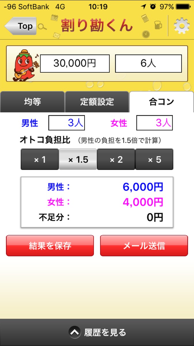 「スマート幹事くん」は日取りからお店の予約までがスムーズにはかどる他に、宴会にピッタリなお店候補をチェックできたり、二次会・カラオケのできるお店をホットペッパーグルメで検索できる機能も整っています。ホットペッパーグルメからネット予約をすると、お店のクーポンを確認でき、Pontaポイントが貯まるのも嬉しい点です!幹事を頑張ったご褒美に、こっそりポイントを貯めちゃいましょう。そして参加人数が多いと特に手こずってしまうのがお会計ですが、「割り勘くん」の機能を使うと割り勘作業も簡単です。合計金額と人数を入力するだけで、一人当たりの金額を自動計算してくれます。合コンでは男性側が多く負担することがありますが、男性と女性の支払い比率を変えた算出もできます。支払金額内容はメールで送信することもでき、一括送信すると便利です。