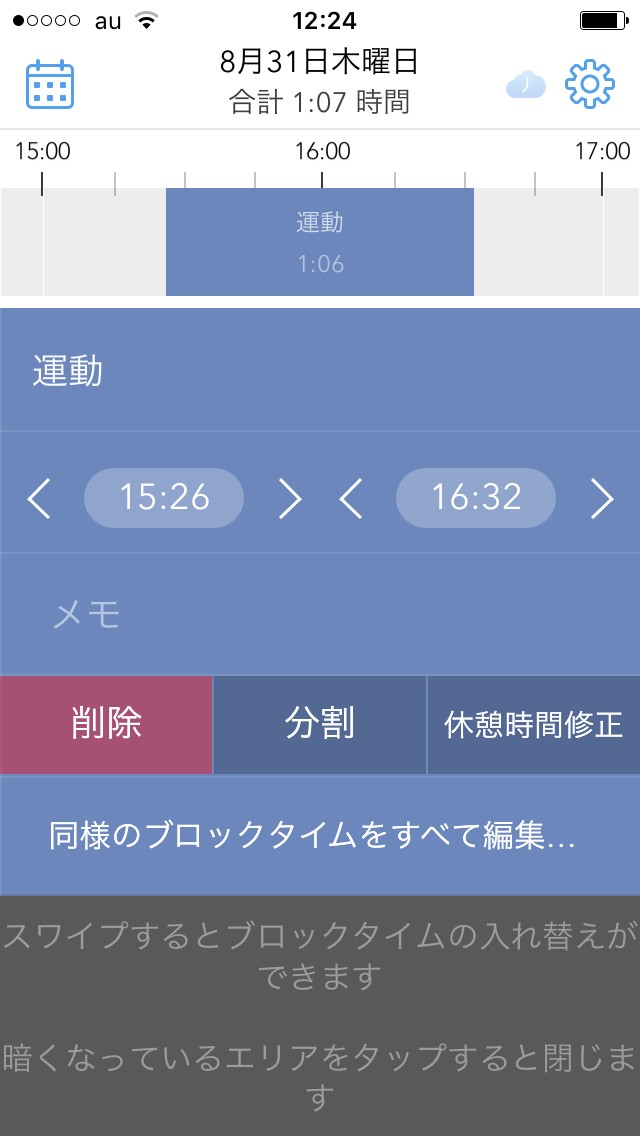 「Hours - 時間追跡」では、うっかり記録をつけ忘れても、後から記録を手動で残すことができます。