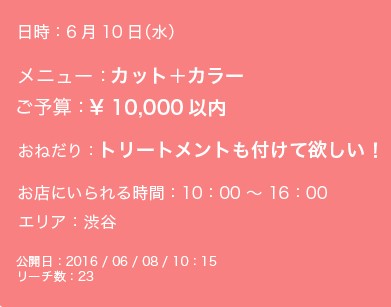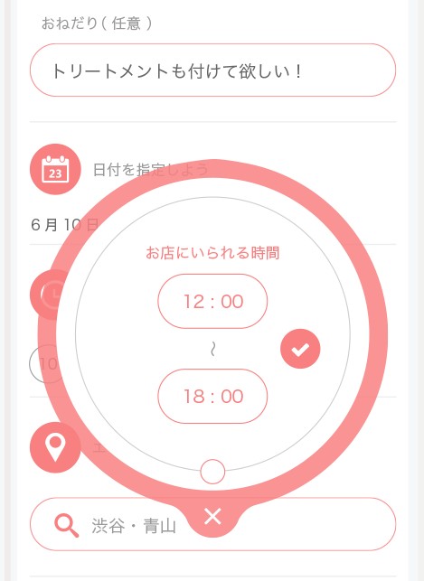このリクエストを下に対応可能な美容室がアプローチしてくれます。