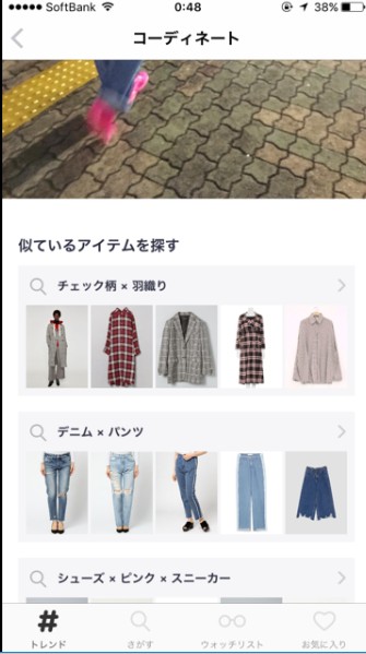- コーディネートが確認して似たような商品を検索できる