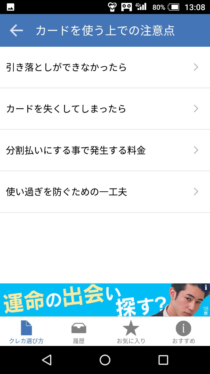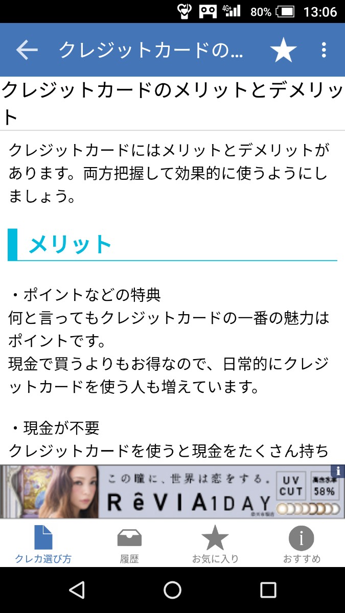 『クレジットカードの選び方 』を使ってみると、クレジットカードの基礎知識や使う上での注意点が細かく書かれていてわかりやすい印象を受けました。また、今まで分からなかった難しい用語も簡単に調べられるのでとても便利です。クレジットカードは多くの会社で発行されているので、今までは比較するのがとても大変でしたが、『クレジットカードの選び方 』を見ると「航空会社」や「インターネットショップ」など、各会社ごとに特徴がわかりやすく書かれていたので参考になりました。よりカードを有効に利用する方法やポイントアップ術も記載されているので、日々の生活にも役立てたいです。また、電波状況が悪い場所でもアプリを開けるのでいつでも情報が確認できます。さらに、「シェア機能」が搭載されているのでSNSを利用して情報をシェアできるのも便利です。