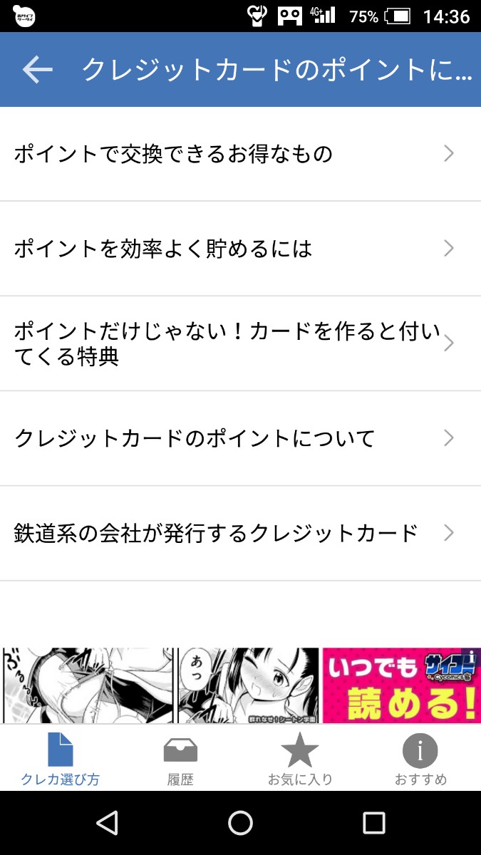 『クレジットカードの選び方』では、クレジットカードの情報が満載です。例えば、「基礎知識」や「魅力」はもちろん、「注意点」も細かく記載されています。また、「リボ払い」や「キャッシング機能」など、知っているようで意外と分からない用語も簡単に調べられるのでとても便利です。クレジットカードは「自動車会社」「コンビニ」「銀行」など多くの会社で発行しているため、どこでクレジットカードを作ればいいかわからなくなりませんか?『クレジットカードの選び方 』を見ると、各会社ごとの特徴がわかりやすく書かれているので比較しやすいです。また、カードのポイントをよりお得に貯める方法も提案されています。「検索機能」や「履歴機能」が搭載されているので、わからない機能や用語を調べることができます。さらに「お気に入り機能」を使うと、気になる記事を保存することが可能です。クレジットカードの上手な活用術も記載されているので、有効的に利用してみましょう。