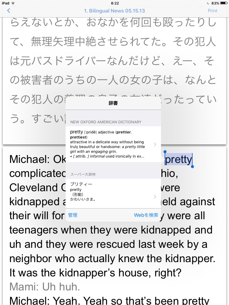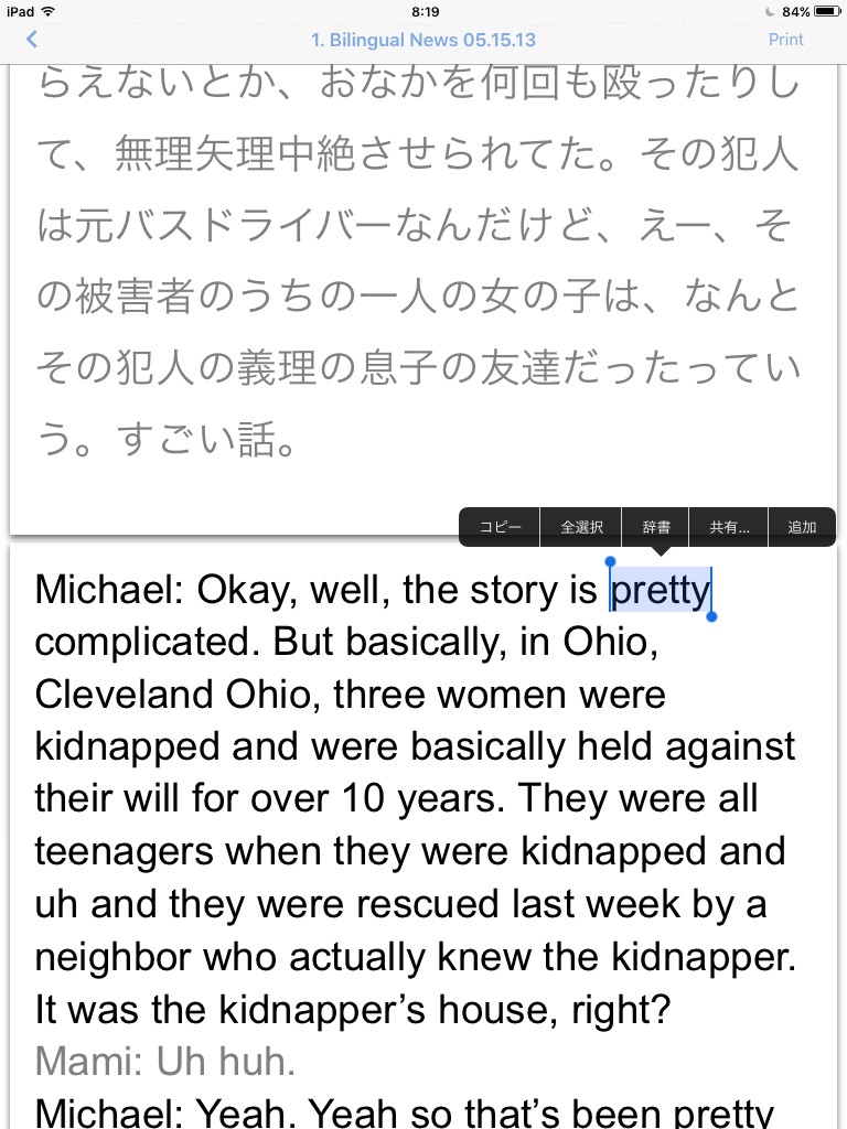 そのバイリンガルニュースの文字起こしテキスト版がこのソフトです。