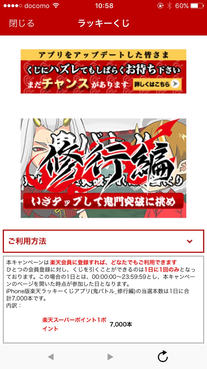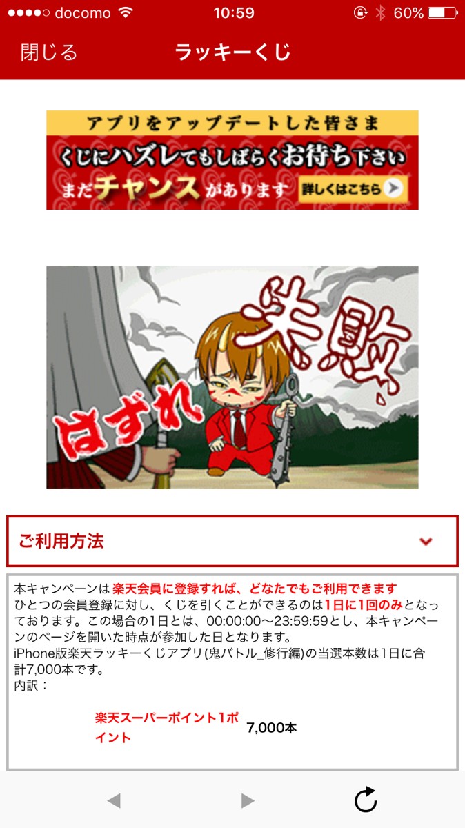 毎日の運試し!楽天ラッキーくじ