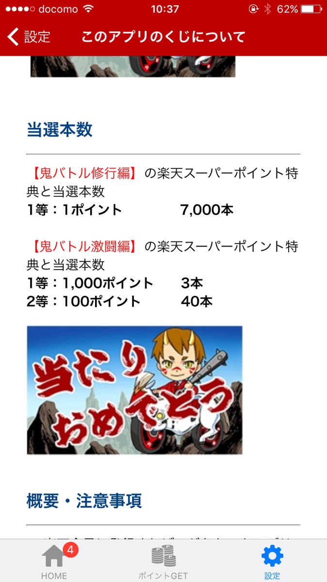 当たりくじの本数は、毎日10,000本以上も用意されており、運が良ければ最大1,000ポイントが当たることもある嬉しいアプリです。