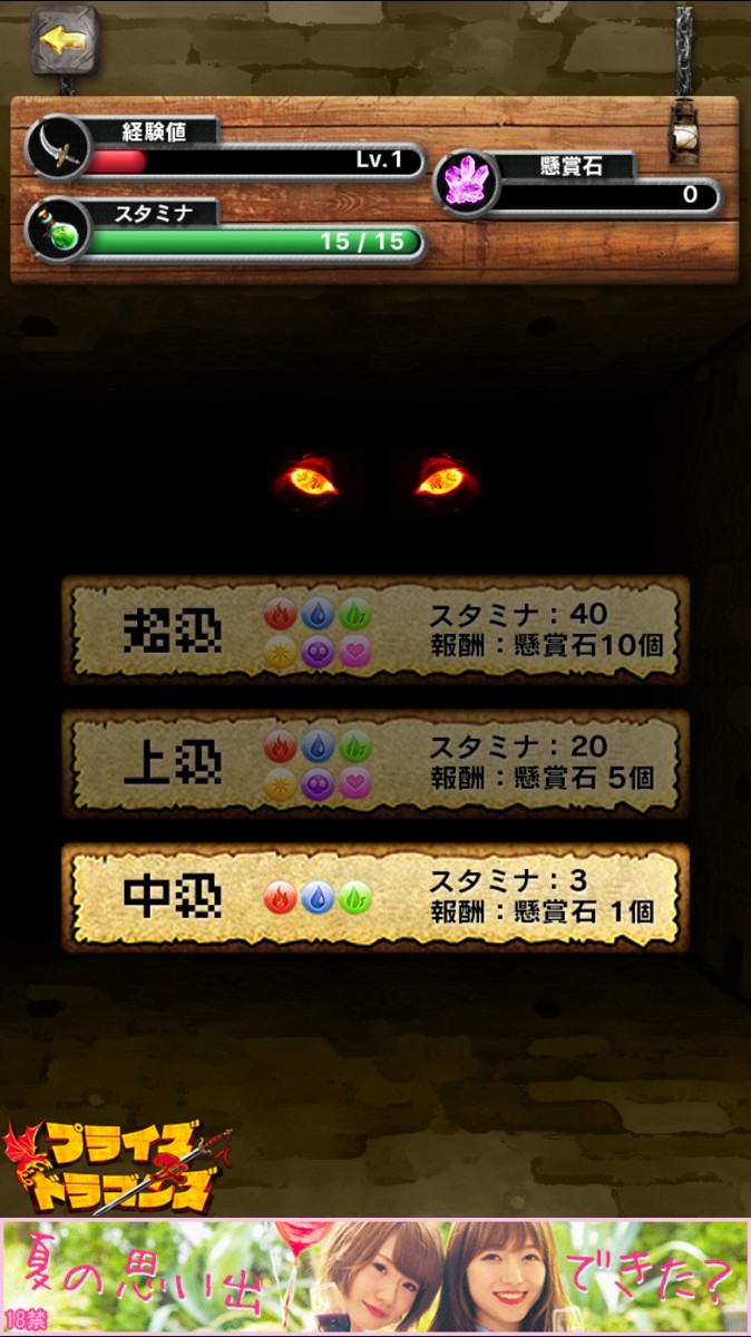 ゲームのやり方がわかったら、練習をしてみます。練習は回数をこなすとレベルが上がるのでコツコツ練習ダンジョンで遊んでレベルをあげましょう。