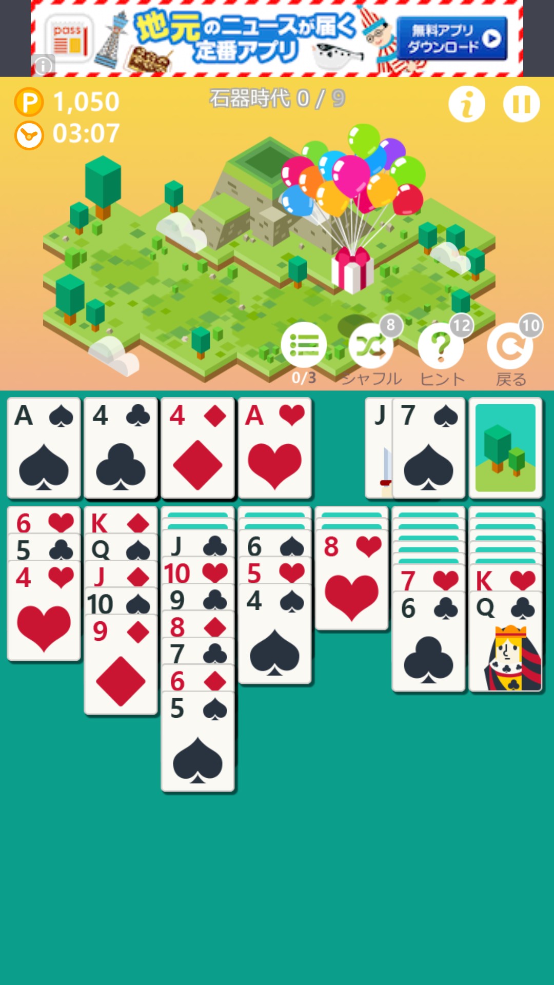 各時代は9ステージずつあるので、発展させるには何度もソリティアをクリアしなくてはいけません。