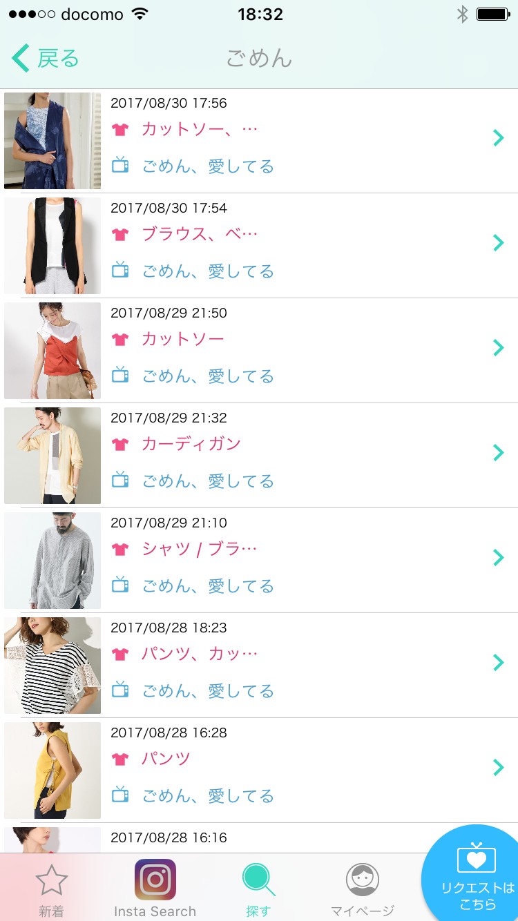 「あの洋服が気になる!」というものがあっても、このアプリで全ての洋服を網羅しているわけではありません。そんなときはリクエストをすることができます。番組名やアイテムが映っている画像などを投稿するだけでリクエスト完了。これで気になるアイテムが見つかるかもしれませんよ。