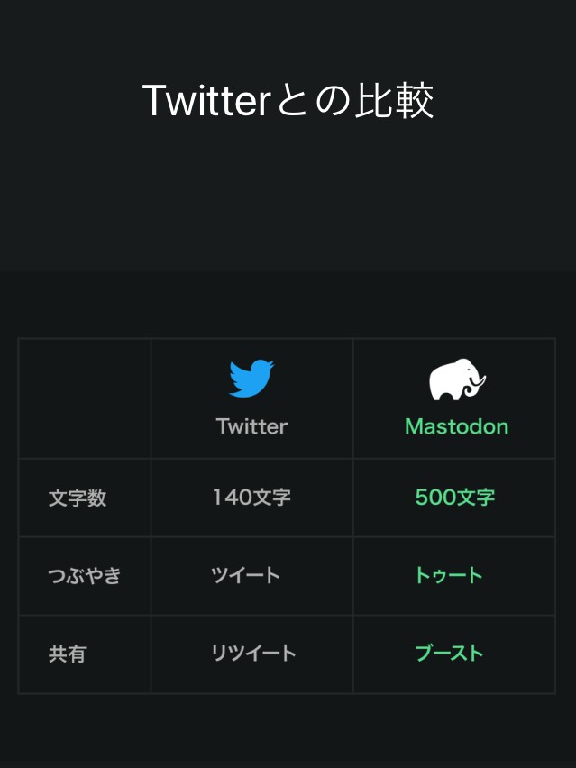 Twitterの140文字を少ないと感じられる方にとっては、マストドンの500文字はより魅力的に思えるかもしれませんね。