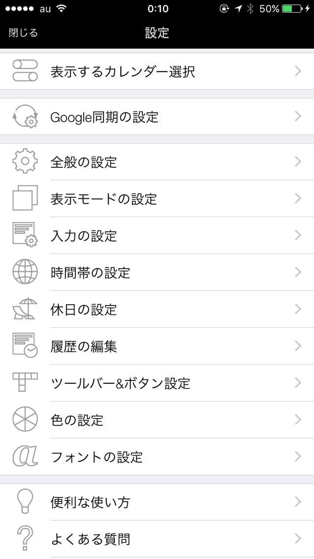 フォントの形式やサイズ、アイコンやマーカーの色をはじめ、表示モードや時間帯など自分が使いやすいように細かくカスタマイズすることができます。月表示の開始曜日を設定したいときや海外などで利用したいときにも役立てることができます。