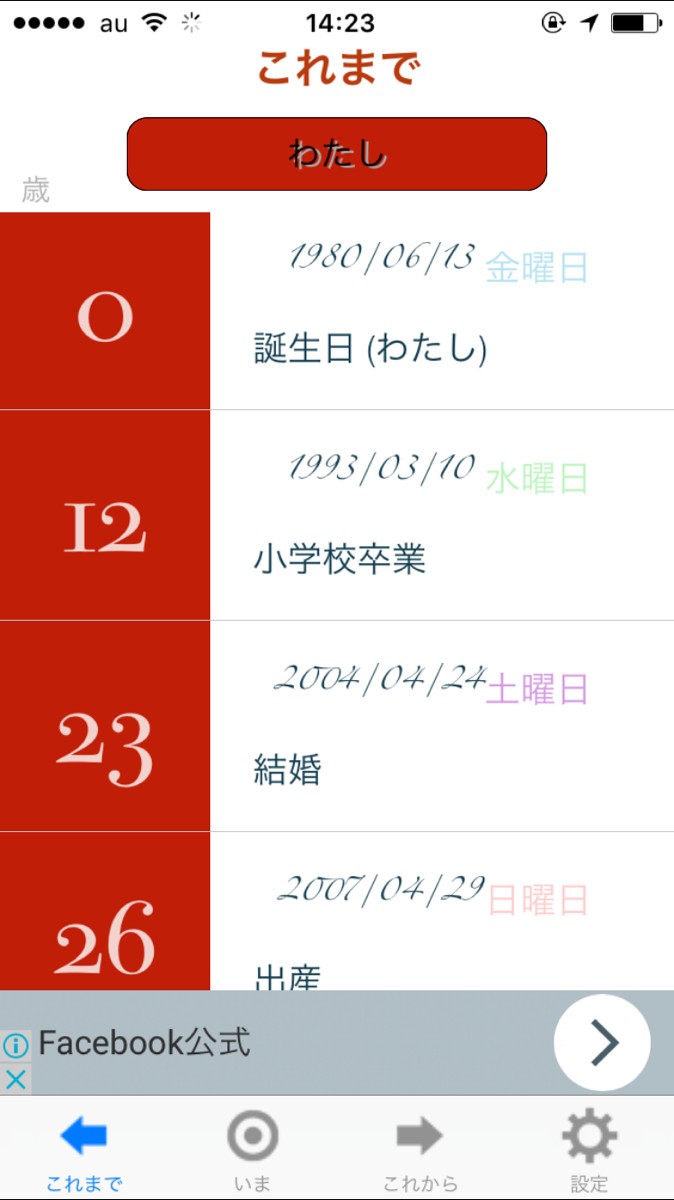 誕生日や、小学校入学・大学卒業、結婚、出産などこれまで生きてきたなかで、いろいろなことがありましたよね。自分の人生の節目を自由に入力することができます。
