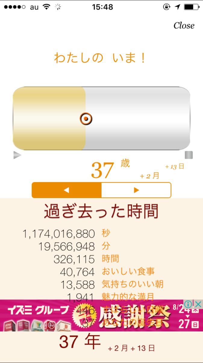 ・生まれてからその年齢まで(未来を含めて)に食事をした数や、朝を迎えた数、満月の回数などを表示してくれます。普段何気なく迎えた朝も、いつかは終わりがくるのだと実感させられます。毎日を大切に過ごしたいと思えるかもしれません。