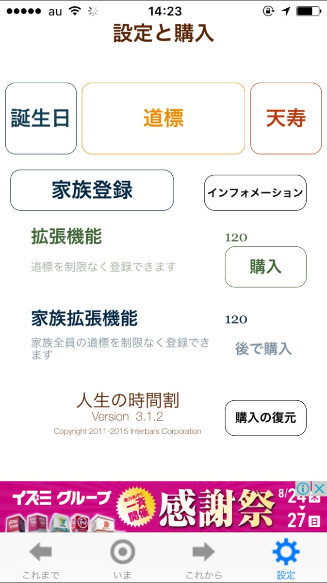 ・アプリを起動します。まずこれまでの自分の人生を振り返ってみましょう。「設定」をタップすれば、「誕生日」「道標」「天寿」などの登録ができます。