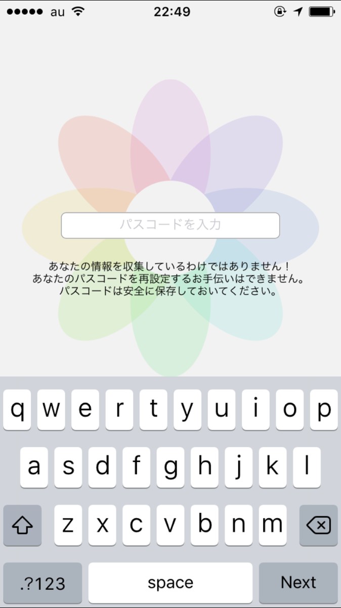 ・アプリを起動します。パスコードの設定をするかどうかを決めましょう。