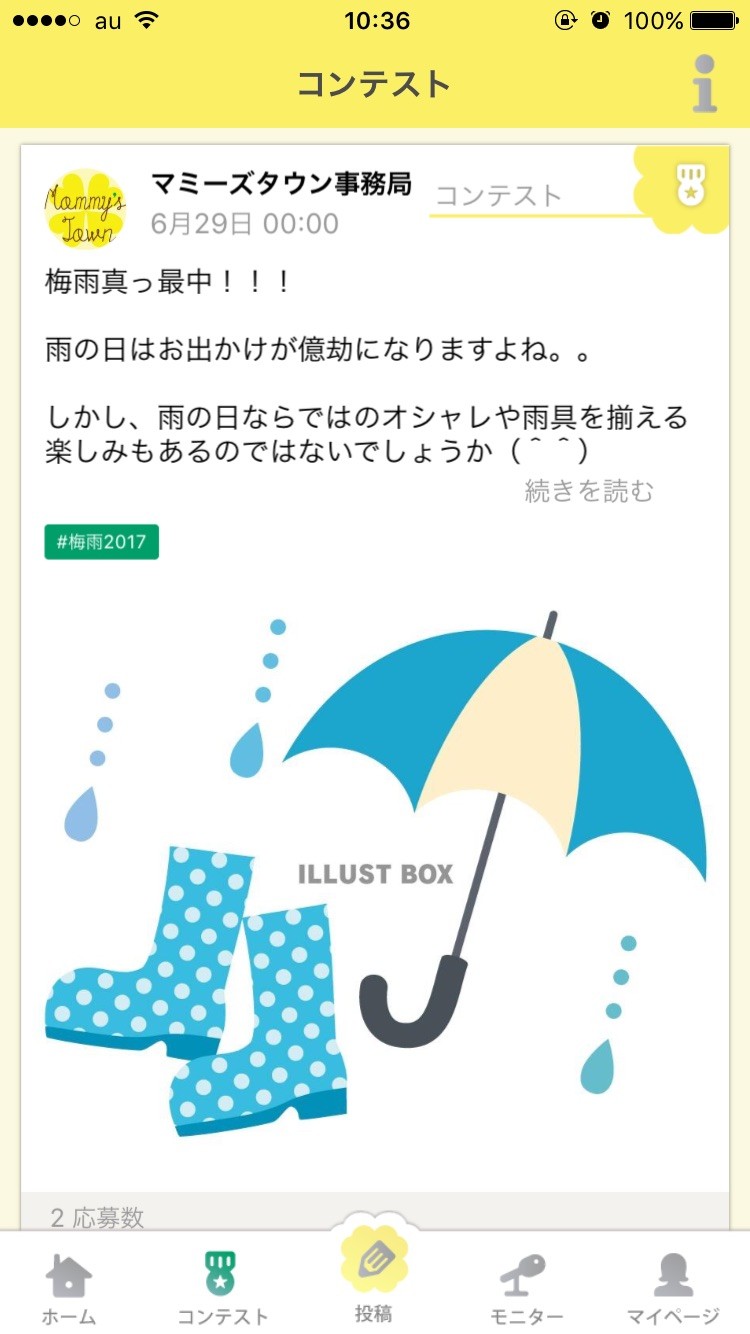 親子で楽しめるコーディネートなど様々なコンテストに参加でき、自分の情報を共有できます。