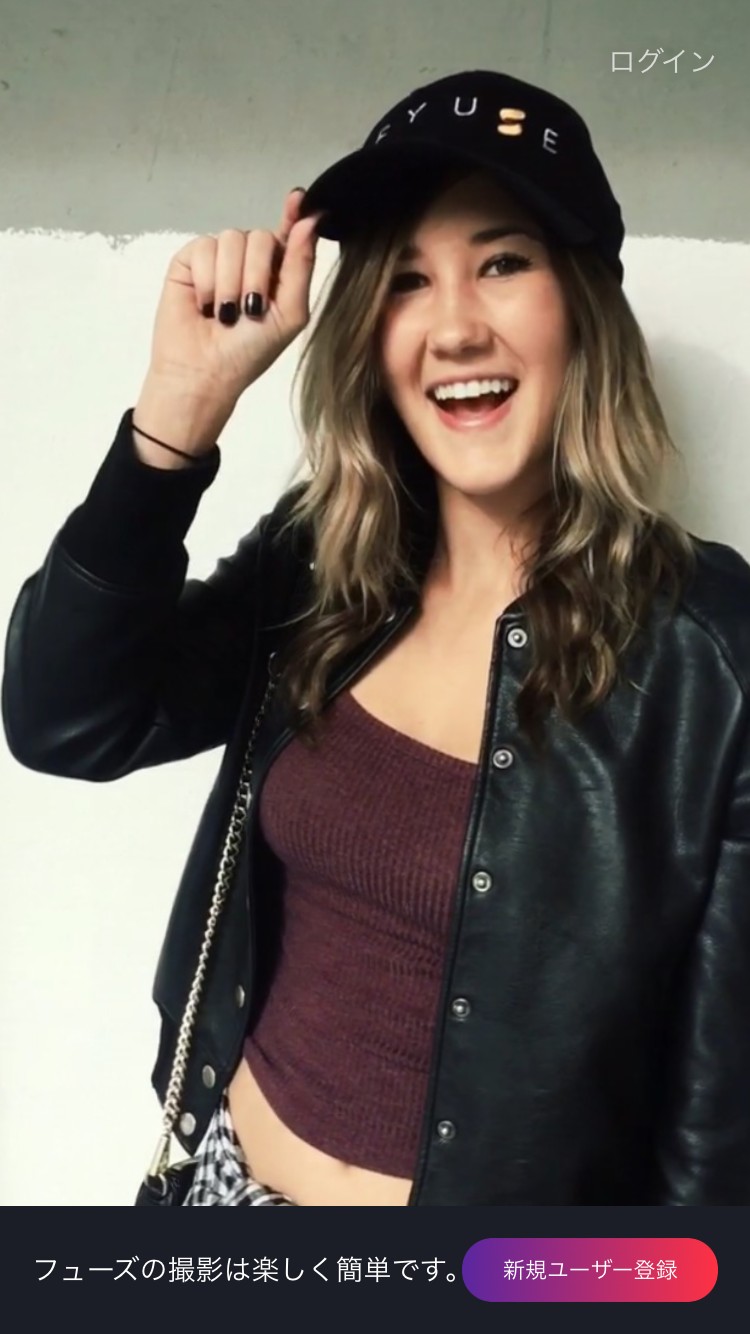 アプリを立ち上げると、「Fyuse」を使って撮影された写真とともに、ユーザー登録画面が登場。