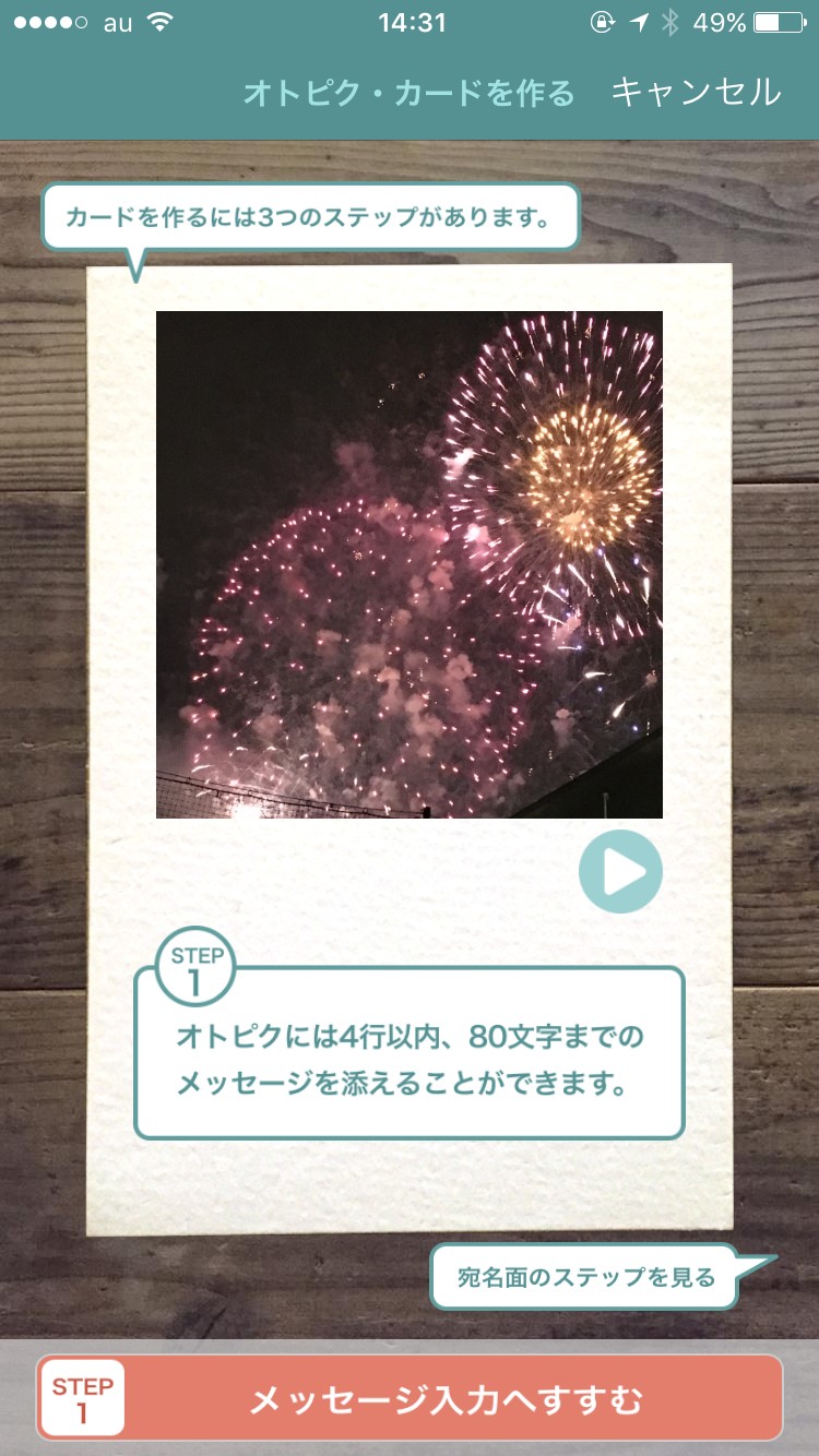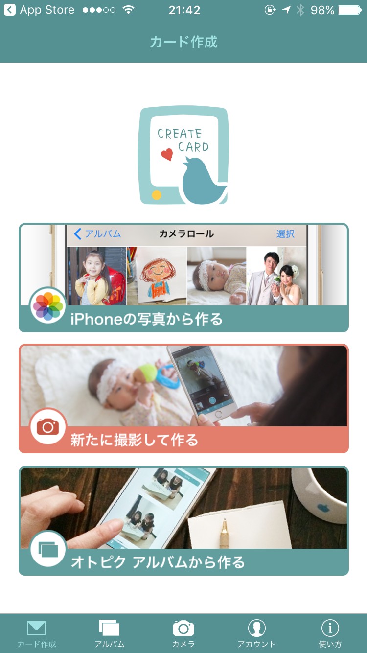 グリーティングカードに使用する写真は、 スマホに保存されている写真を使う事ができますし、 新たに撮影する事もできます。