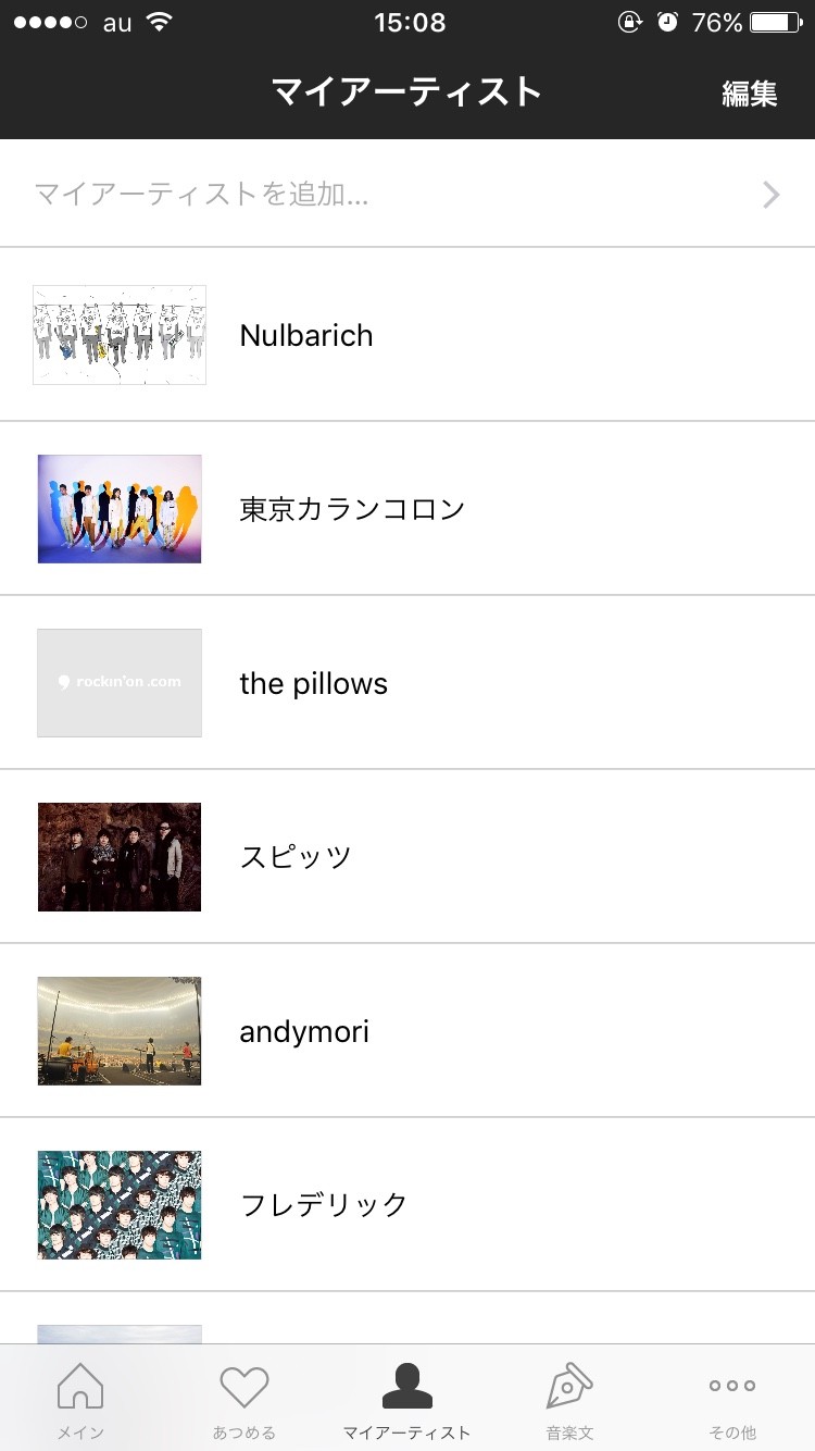 マイアーティストは一覧で見ることもできるので記事に載っていないアーティストを検索して追加することもできます。
