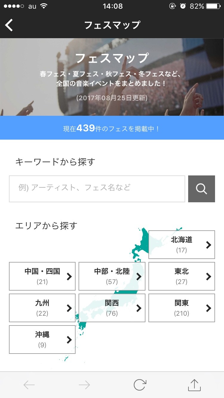 • 全国各地のフェス情報が載ったフェスマップで予定を立てるのにも便利