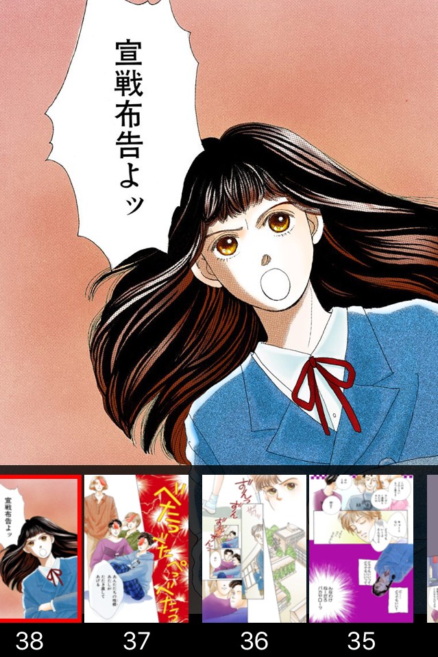 「花より男子・花のち晴れ」では、今読んでいるページの下に各ページをスライドで表示することができるので、見返したいページまで戻るのに大変役立ちます。