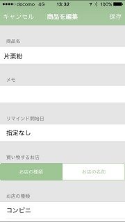 商品の登録は追加ボタンを押し、商品名を入力してからお店の種類を選択するだけで終了です。