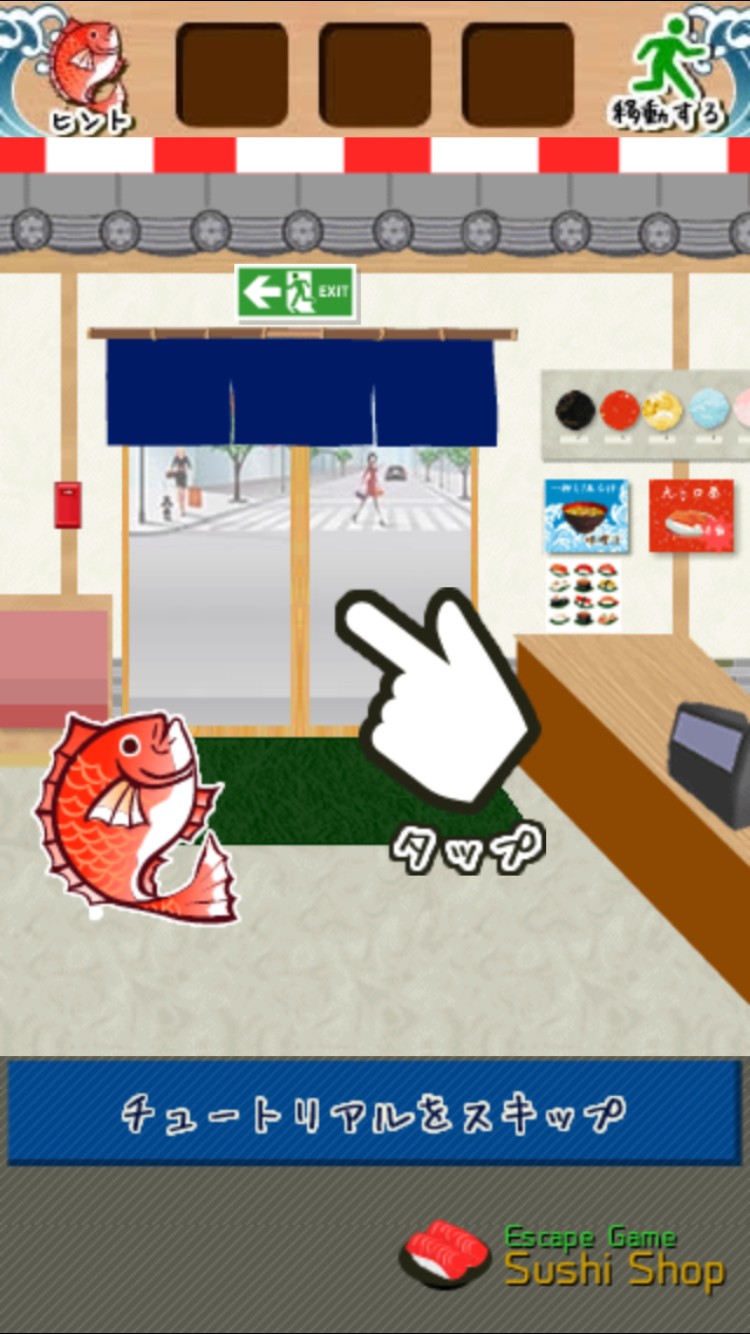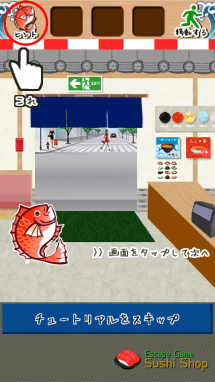 舞台はお寿司屋さん。仕掛けを解いて外に出よう!