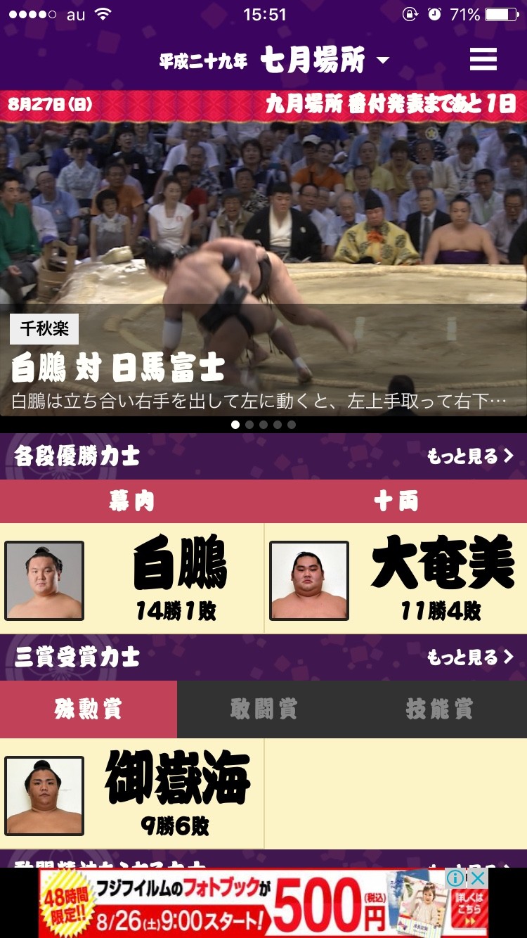 そんな人にオススメなのが「日本相撲協会公式アプリ「大相撲」」です。