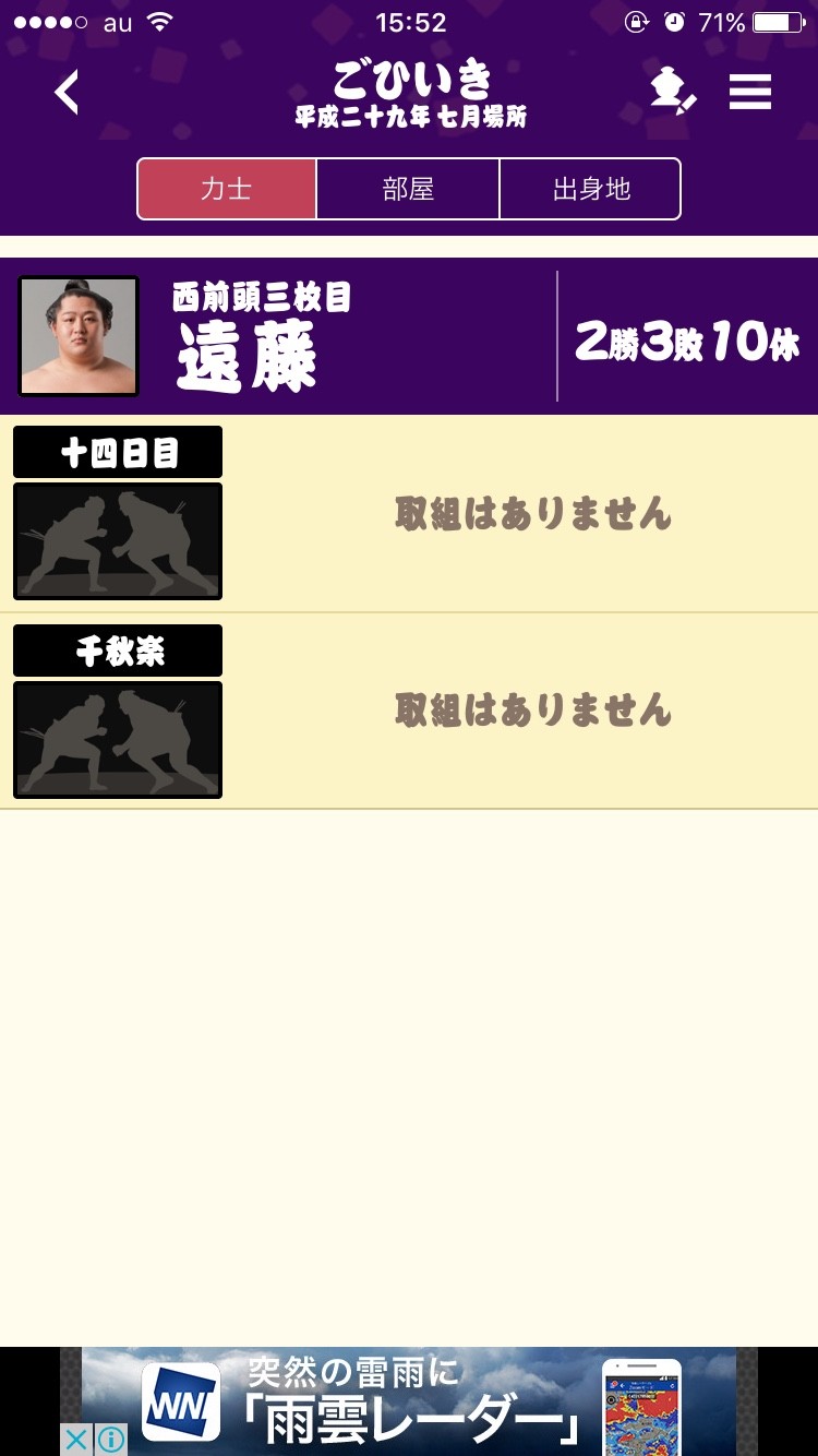 また星取表や番付表もそこから見ることができ、簡単な操作で様々な情報を手に入れることができます。