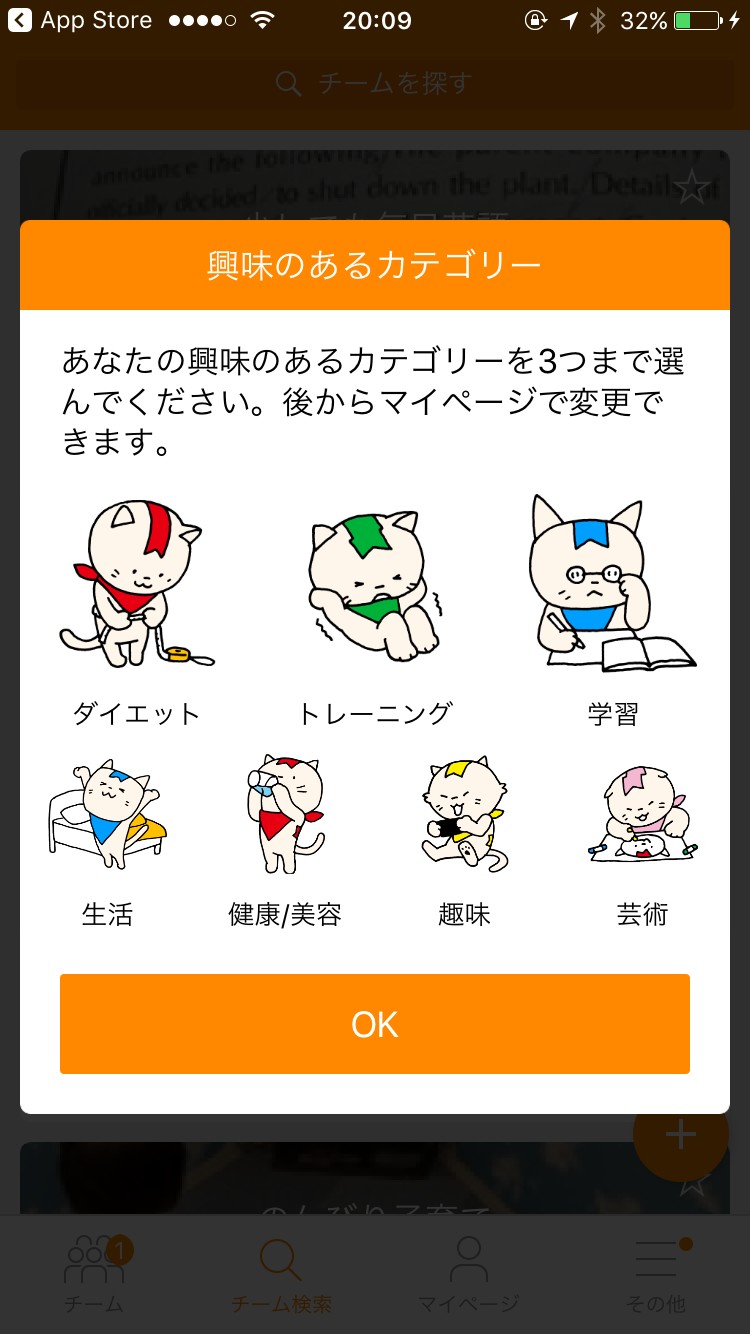 新しい習慣を身に付けたい人が匿名のチームを組み、チャットで励ましあいながらチャレンジしていくという、