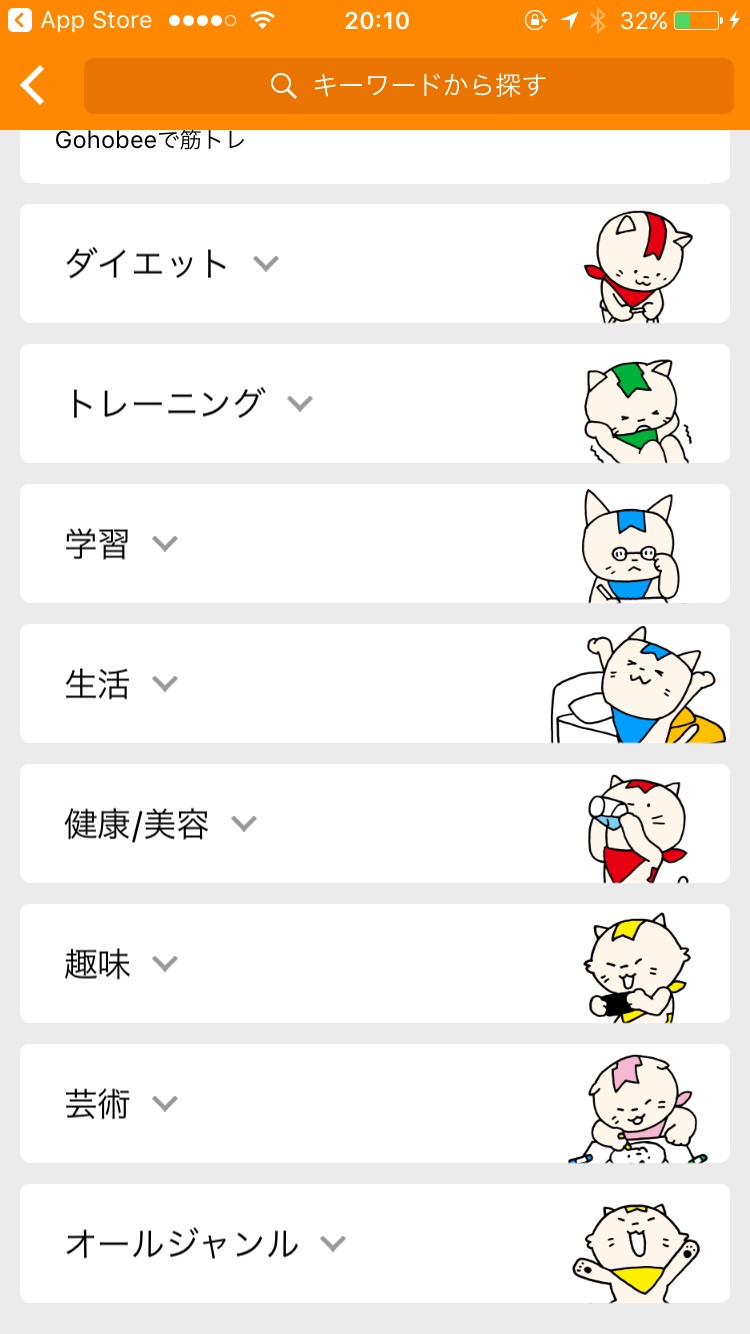 ダイエット、トレーニング、学習などのカテゴリーから検索できたり、